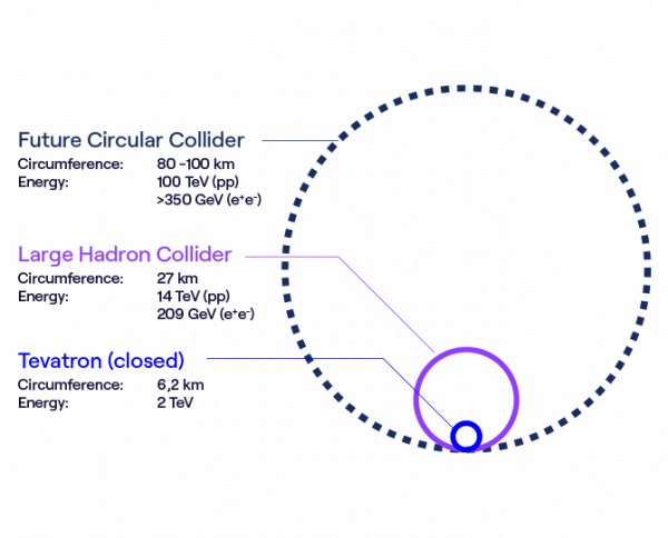 Son 50 yıldır, parçacık çarpıştırıcıları, evrenin en temel parçacıklarını ve yasalarını anlamak için kullanılan başlıca bilimsel araçlar arasında yer almaktadır . 27 km’lik çevresiyle Büyük Hadron Çarpıştırıcısı (LHC ), şu anda dünyanın en güçlü parçacık çarpıştırıcısıdır. Yüksek Lüminesans aşaması (HL-LHC) , 2040 yılına kadar sürecek bir araştırma programıyla makinenin keşif potansiyelini artıracaktır. Ancak CERN, LHC’nin ötesini şimdiden düşünüyor.