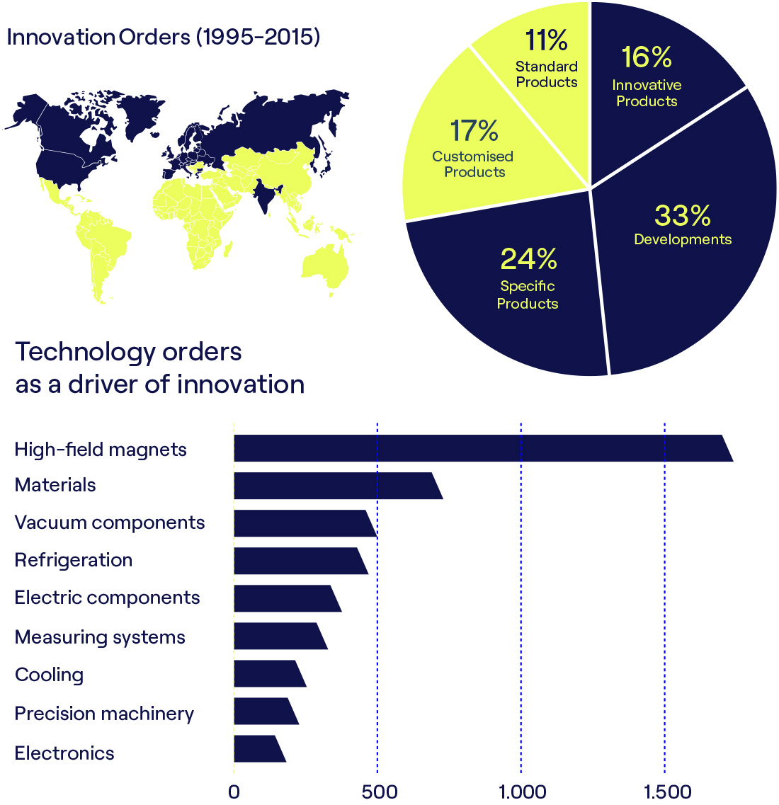 1954’teki kuruluşundan bu yana CERN, dünya çapındaki bilim insanlarına eşsiz bir tesis sunmaktadır. Aşırı sıcaklık, vakum ve radyasyona maruz kalma gibi zorlu çalışma koşullarının yanı sıra jeofiziksel kısıtlamalar, birçok teknolojik alanda en son gelişmelere yol açan benzersiz zorluklar yaratmaktadır. CERN operasyonları üç alanda ileri düzey uzmanlık gerektirmektedir: hızlandırıcı, dedektör ve hesaplama teknolojileri. Bu ihtiyaçlara cevap vermek, kriyojenik, süper iletken mıknatıslar ve radyasyona dayanıklı elektronik ve mikroelektronik gibi birçok alanda gelişmiş gelişmelere yol açmıştır. Endüstri bu çabada önemli bir ortaktır.